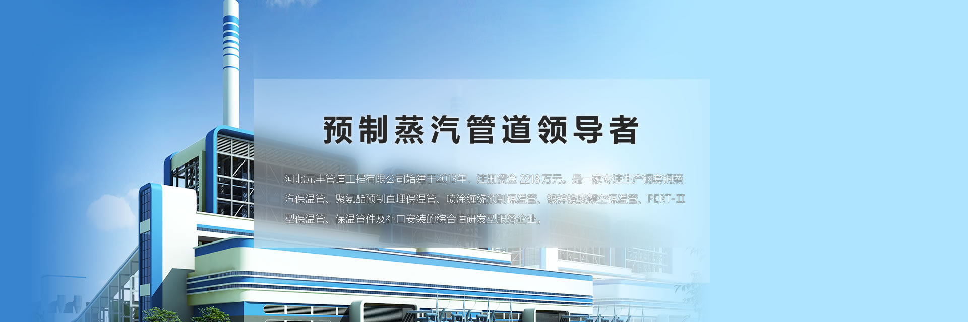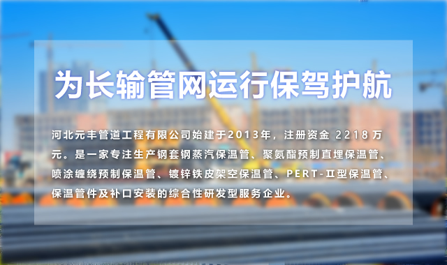 河北元豐管道工程有限公司始建于2013年,注冊資金2218萬元。是一家專注生產(chǎn)鋼套鋼蒸汽保溫管、聚氨酯預(yù)制直埋保溫管、噴涂纏繞預(yù)制保溫管、鍍鋅鐵皮架空保溫管、PERT-Ⅱ型保溫管、保溫管件及補口安裝的綜合性研發(fā)型服務(wù)企業(yè)。